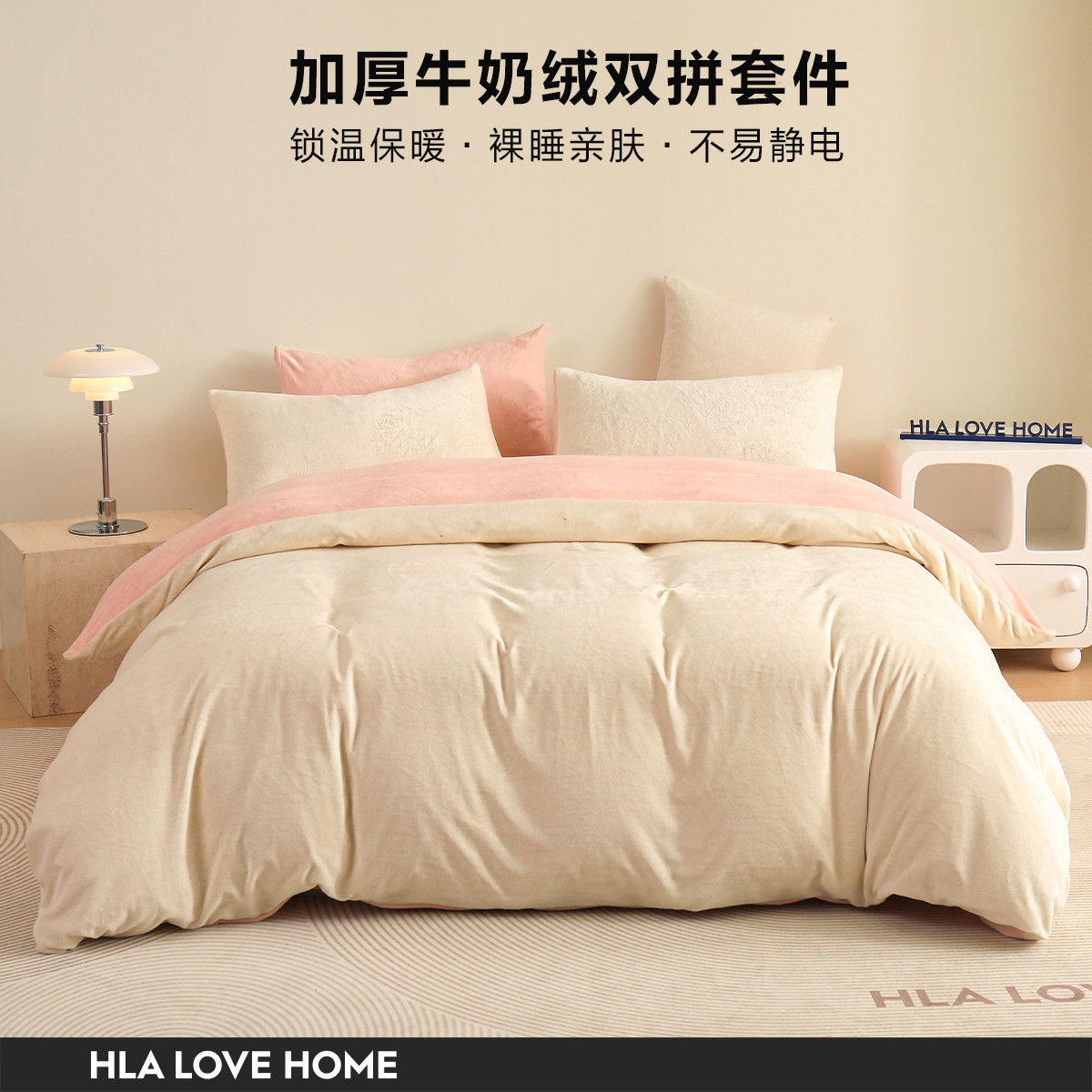 牛奶绒双拼床上四件套珊瑚绒加绒加厚保暖双面冬季床单被套三件套 473923