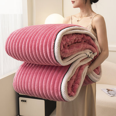 豆豆羊家纺 秋冬新款A类兔毛抽条毛毯 玫瑰红(150cm*200cm)