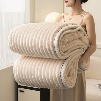 豆豆羊家纺 秋冬新款A类兔毛抽条毛毯 象牙白(150cm*200cm)