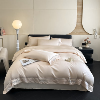 品格家纺 高支全棉宽边刺绣床上四件套 流沙金(适用于1.5米-1.8米床铺)