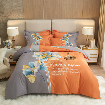 豆豆羊家纺 13376纯棉印花四件套 桔然之间(适用于1.5-1.8床铺)