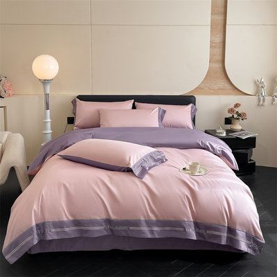 品格家纺 高支全棉宽边刺绣床上四件套 香叶粉+罗兰紫(适用于1.5米-1.8米床铺)