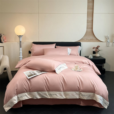 品格家纺 高支全棉宽边刺绣床上四件套 香叶粉(适用于1.5米-1.8米床铺)