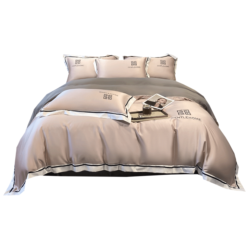 舒正 水洗真丝宽边四件套-浅豆沙 SZJT-0019