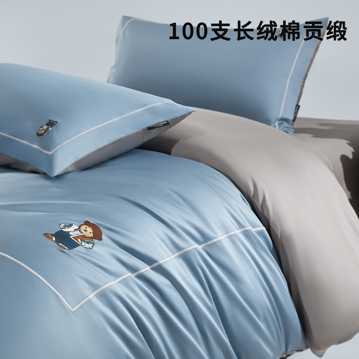 小熊100支长绒棉套件春夏床品全棉被套床单床笠三/四件套送礼 088284