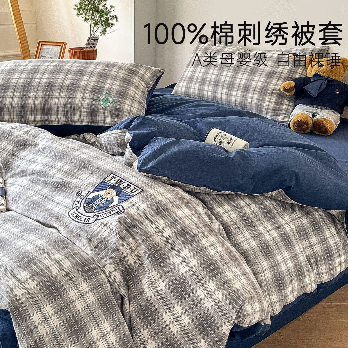 ins风四件套全棉100棉家用床上用品纯棉床单被罩被套套件 993283