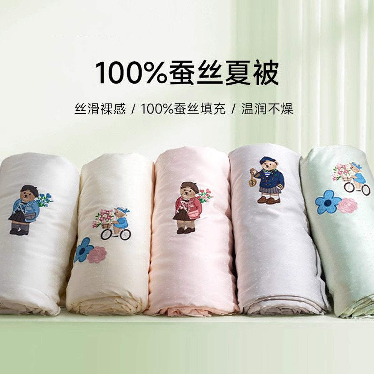 小熊简约风100%蚕丝被夏被刺绣空调被夏凉被薄款被子家用 103836