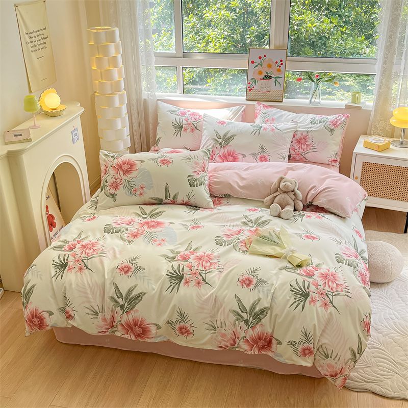 豆豆羊家纺 13376纯棉印花四件套 蜜夏-粉(适用于1.5-1.8床铺)