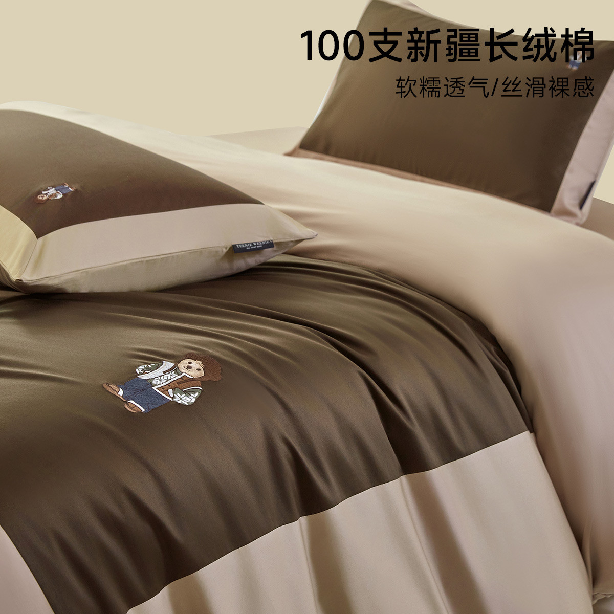 【轻奢贡缎】小熊100支长绒棉四件套春夏100棉被套床单送礼 250460
