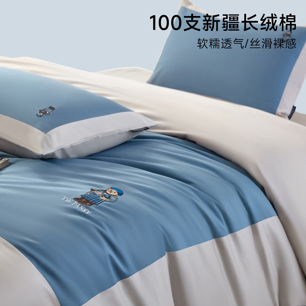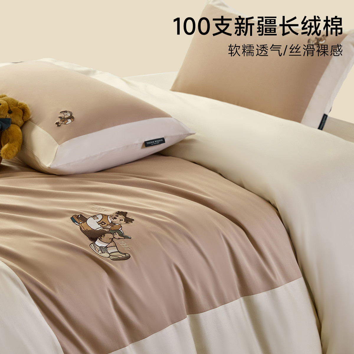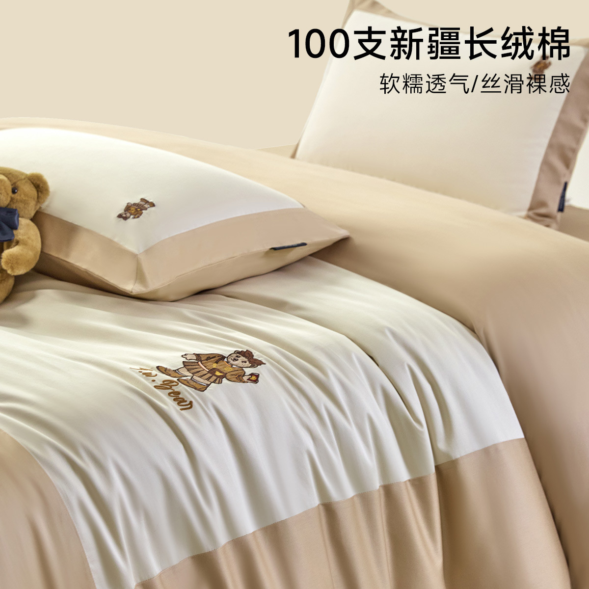【轻奢贡缎】小熊100支长绒棉四件套春夏100棉被套床单送礼 135900