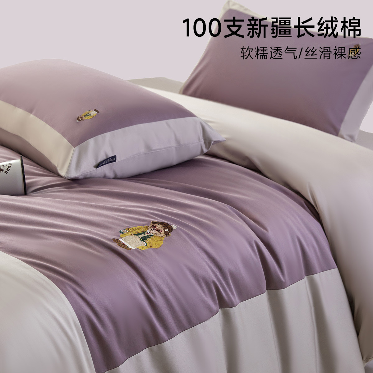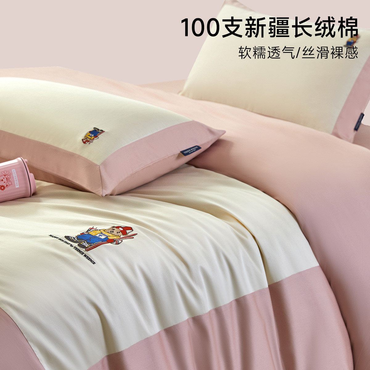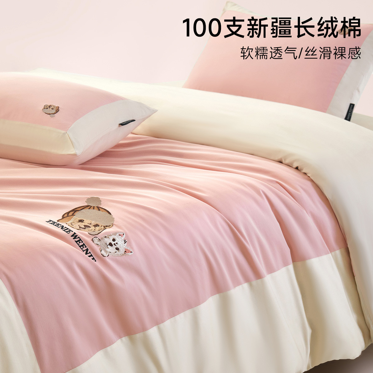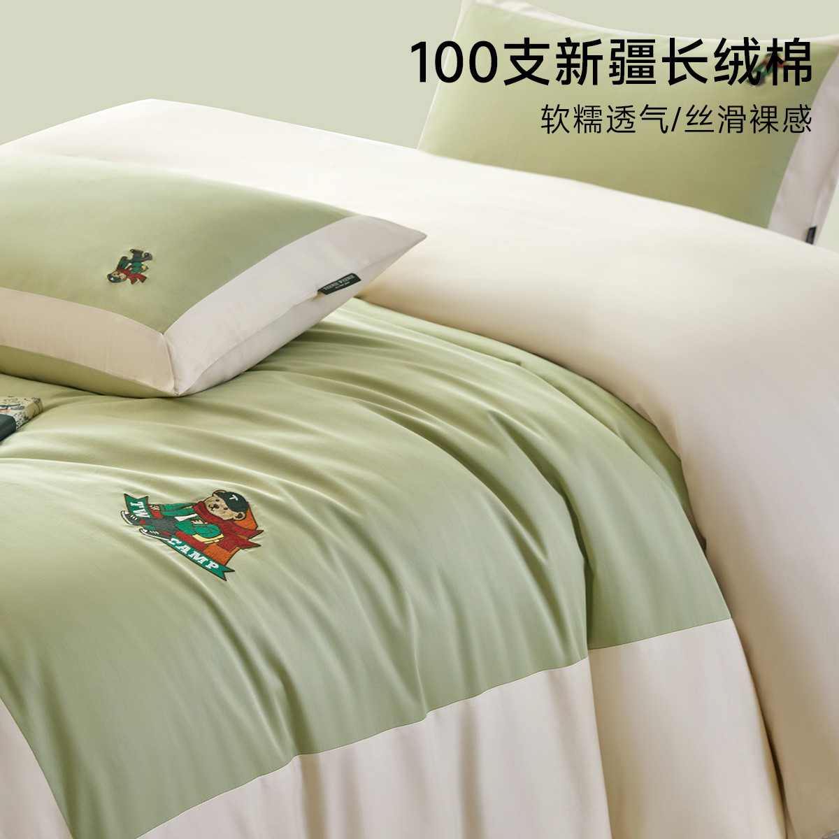 【轻奢贡缎】小熊100支长绒棉四件套春夏100棉被套床单送礼 135900