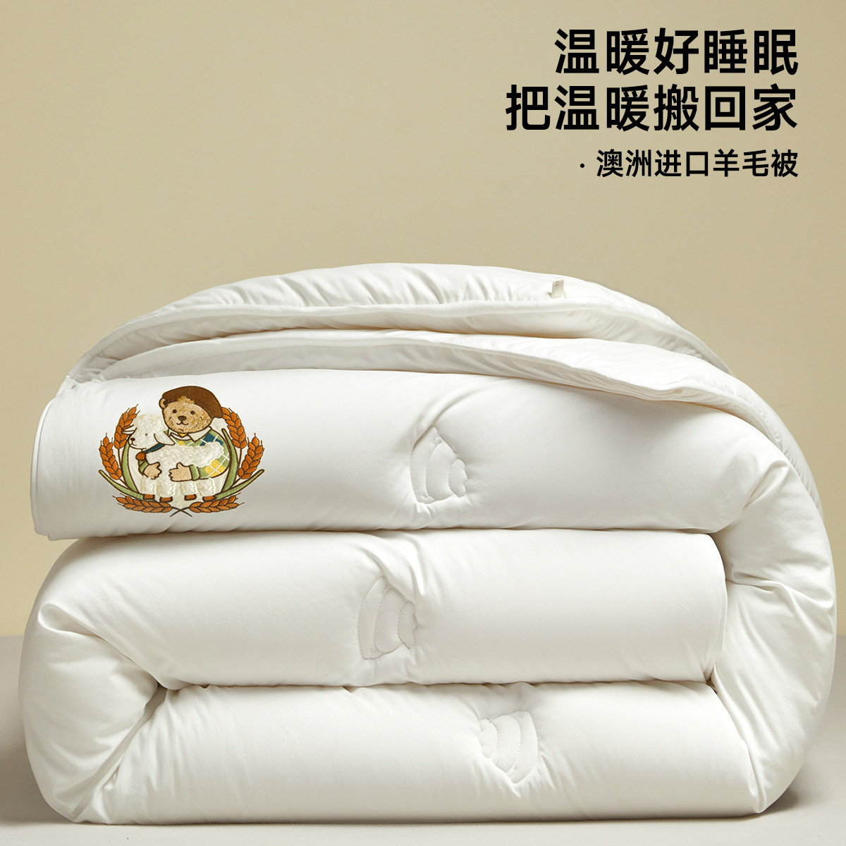 【羊毛被】进口澳洲羊毛被冬被加厚小熊四季款春秋被保暖被子 893596