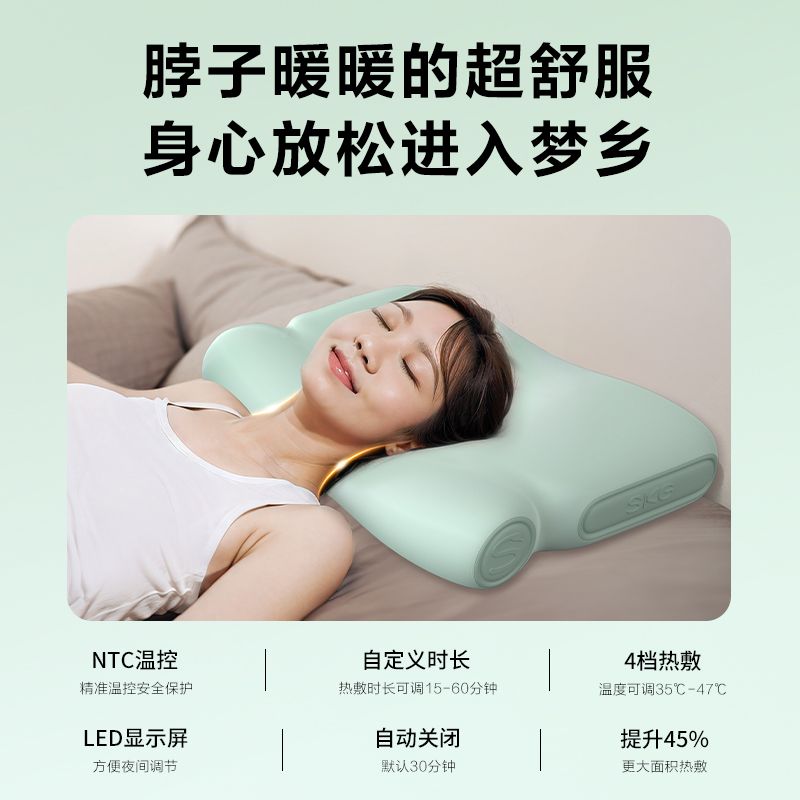 SKG颈椎枕头助深睡眠枕护颈专用枕芯睡觉软硬枕高度可调节双层枕芯单成人支撑送家人 热敷+反牵引+记忆棉 P3-2代豪华款