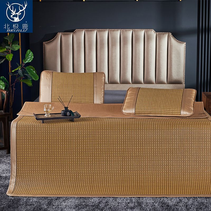 北极鹿凉席三件套玉珠凉席套装可折叠软藤席1.8m