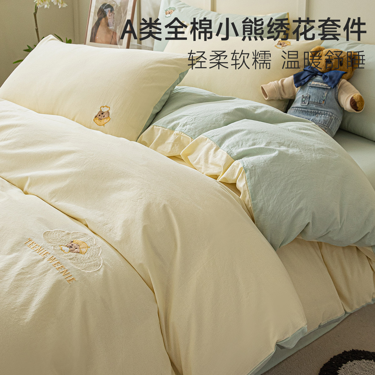 爆款】小熊全棉水洗棉四件套纯棉家用床品春夏被套床单学生三件套 487516