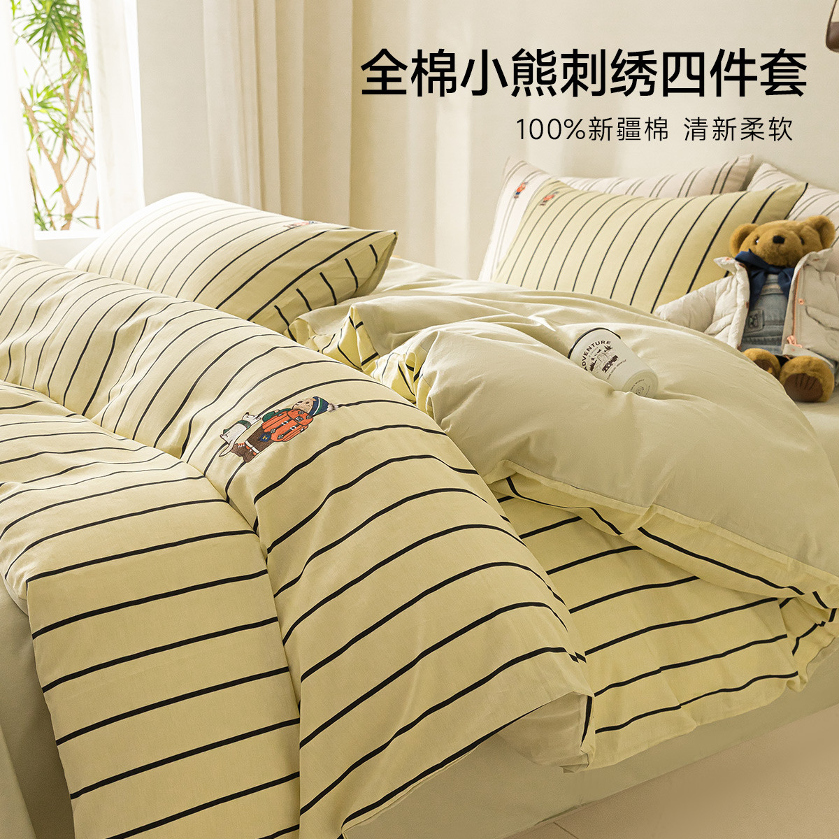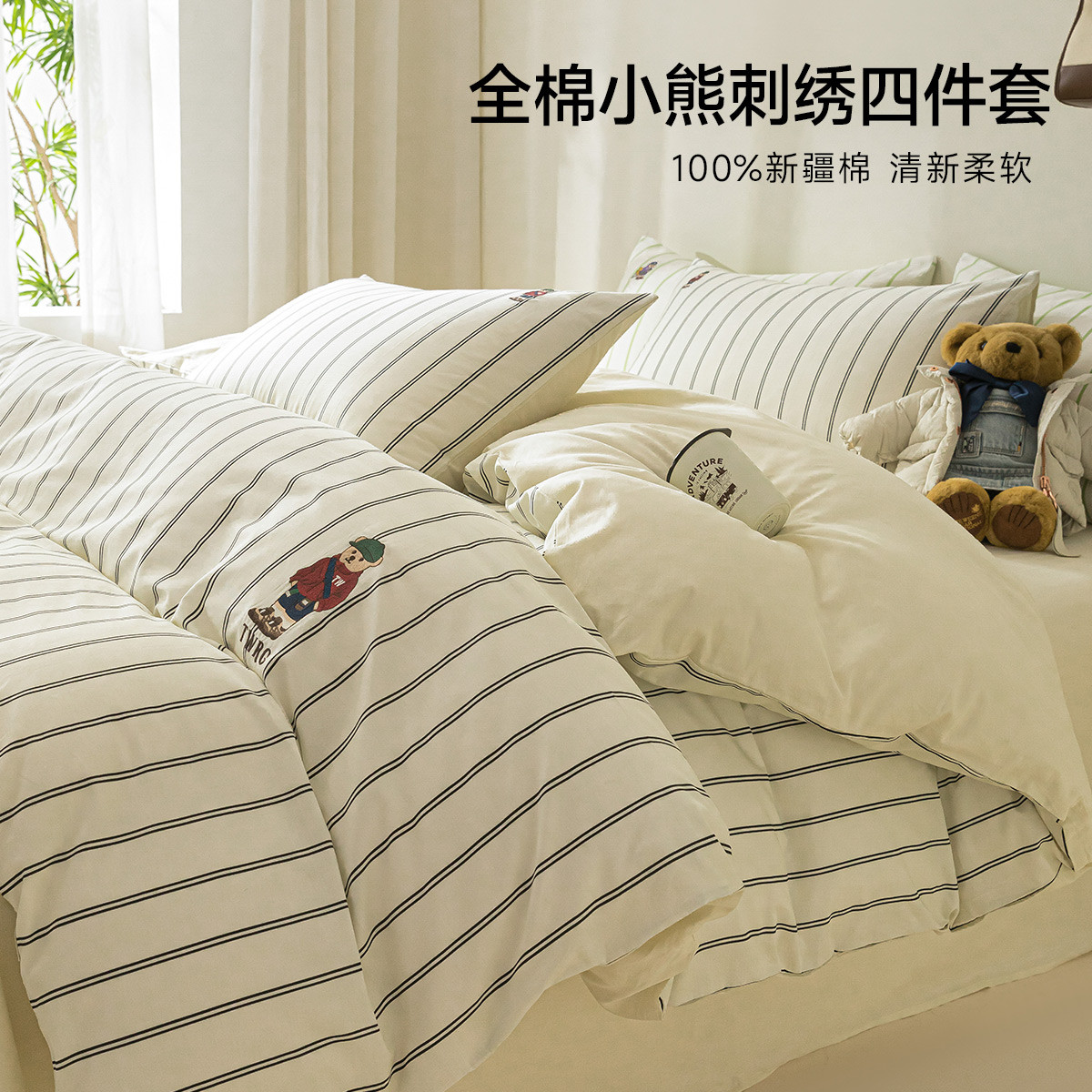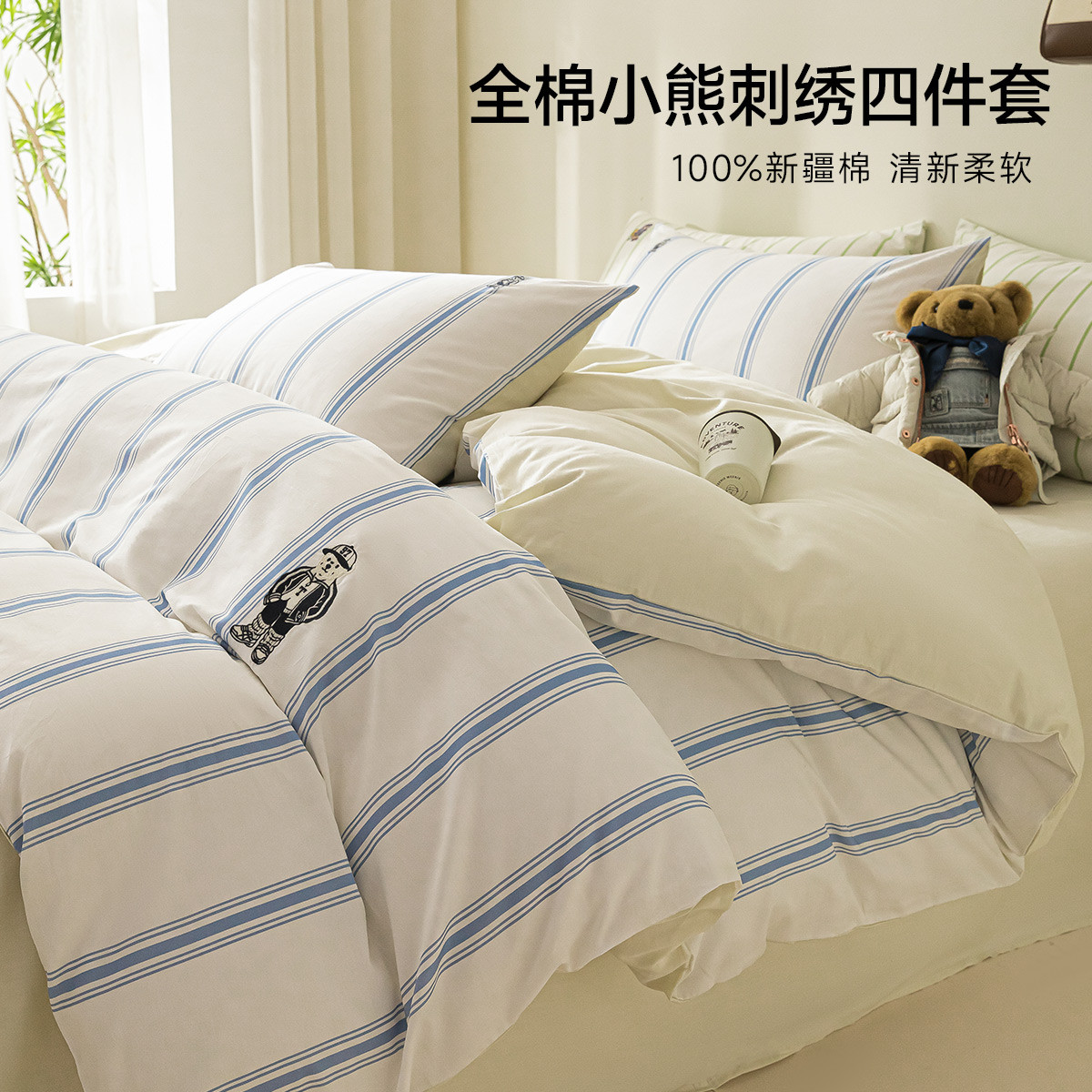 爆款】小熊全棉水洗棉四件套纯棉家用床品春夏被套床单学生三件套 434268