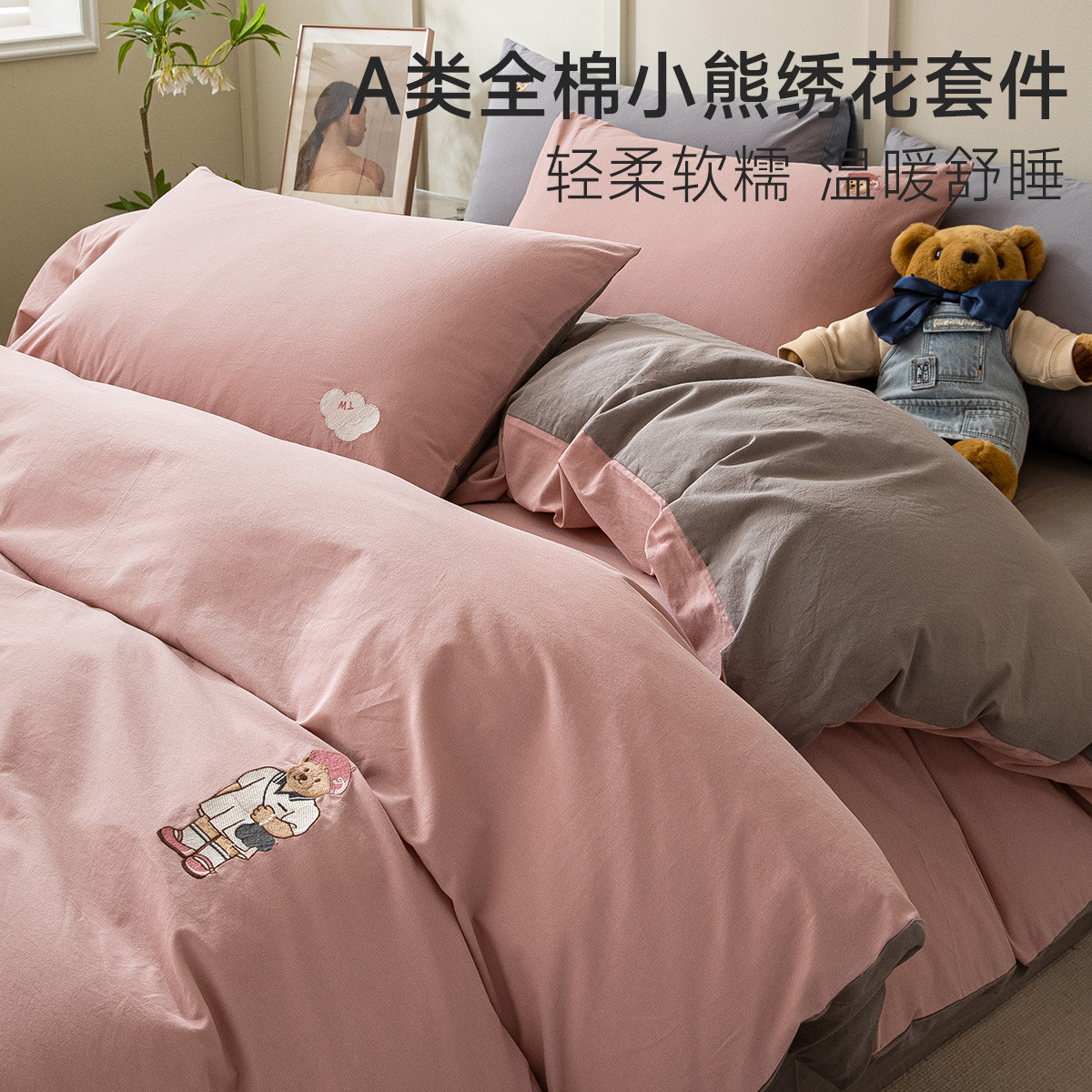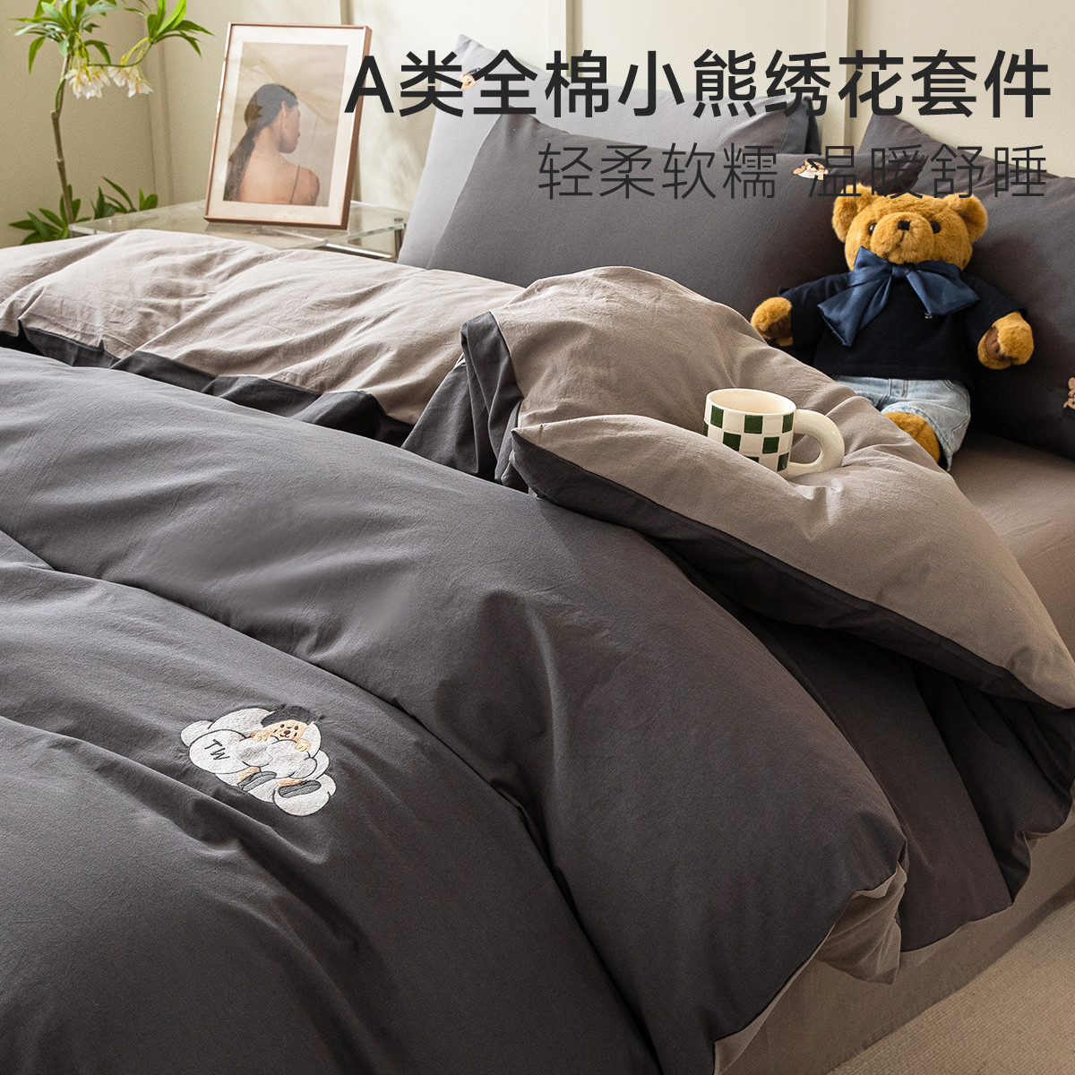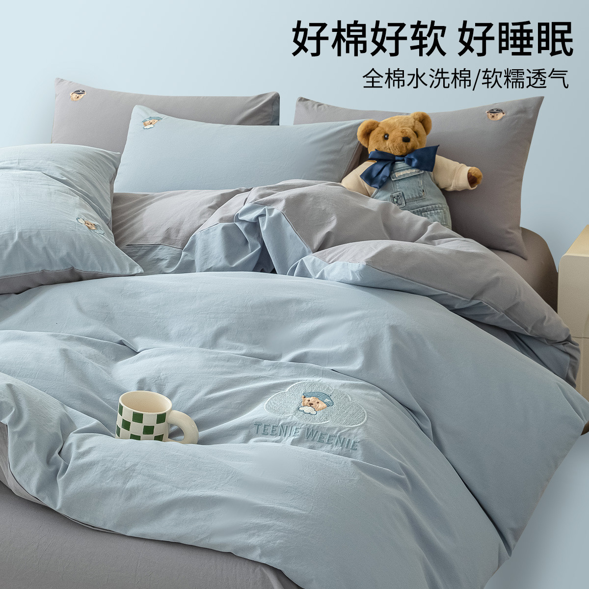 爆款】小熊全棉水洗棉四件套纯棉家用床品春夏被套床单学生三件套 434268