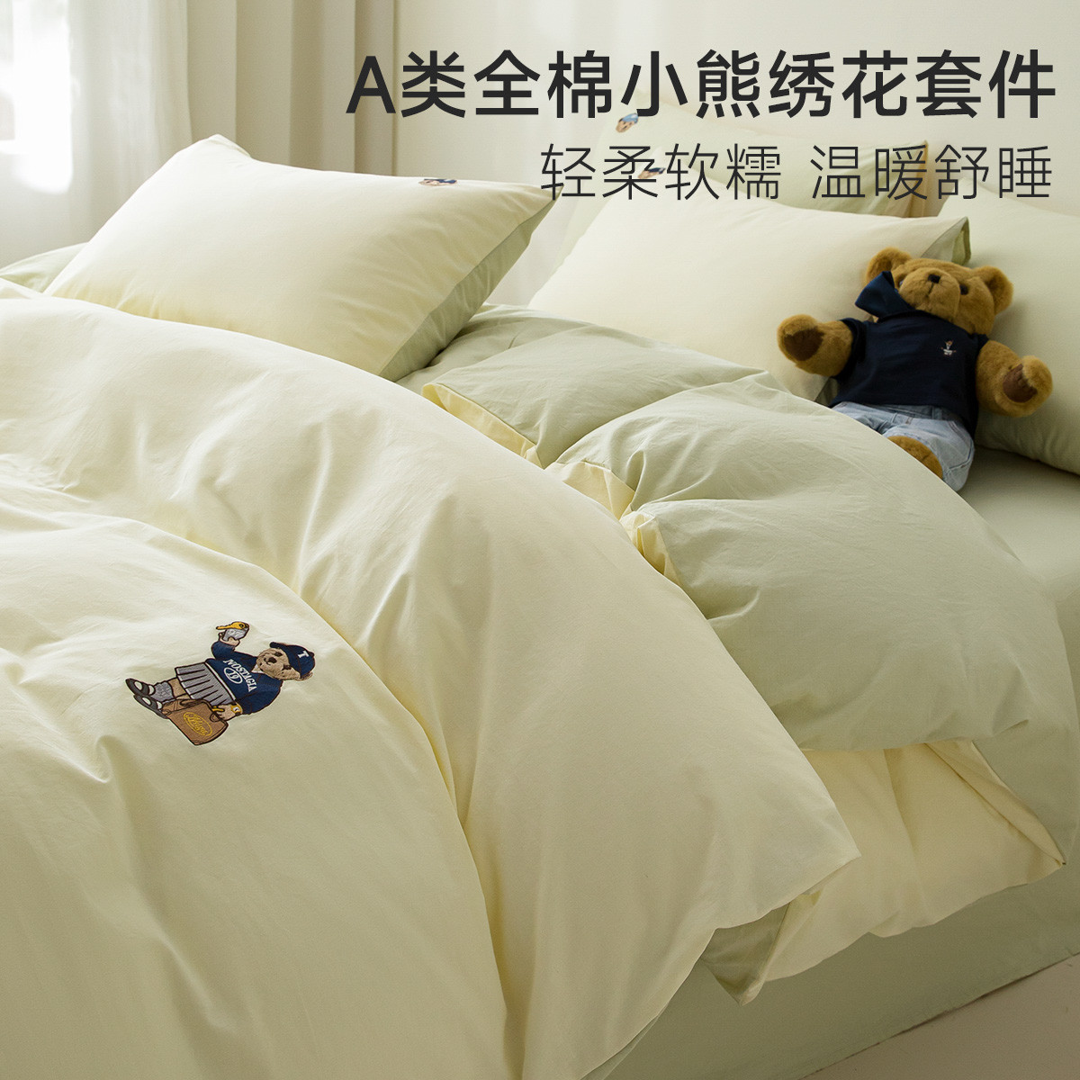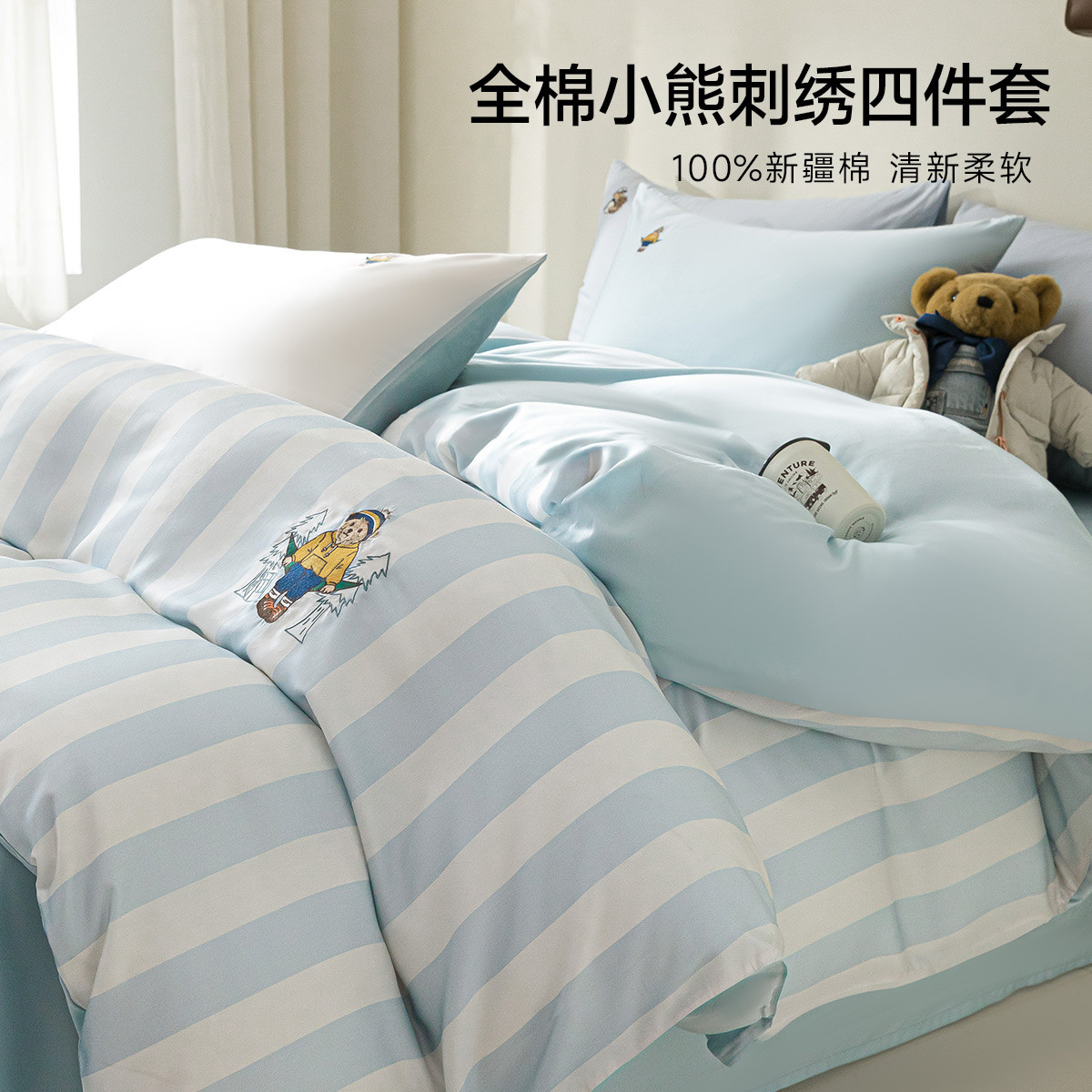 【断码捡漏】小熊简约风全棉套件春夏纯棉被套床单学生三件套 305820