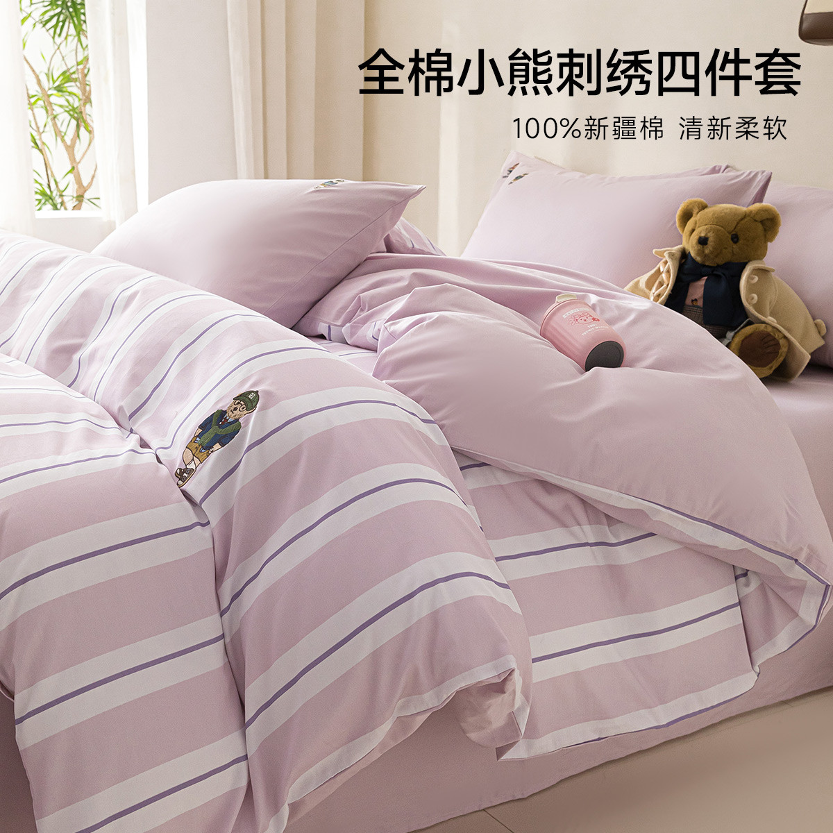 爆款】小熊全棉水洗棉四件套纯棉家用床品春夏被套床单学生三件套 499804