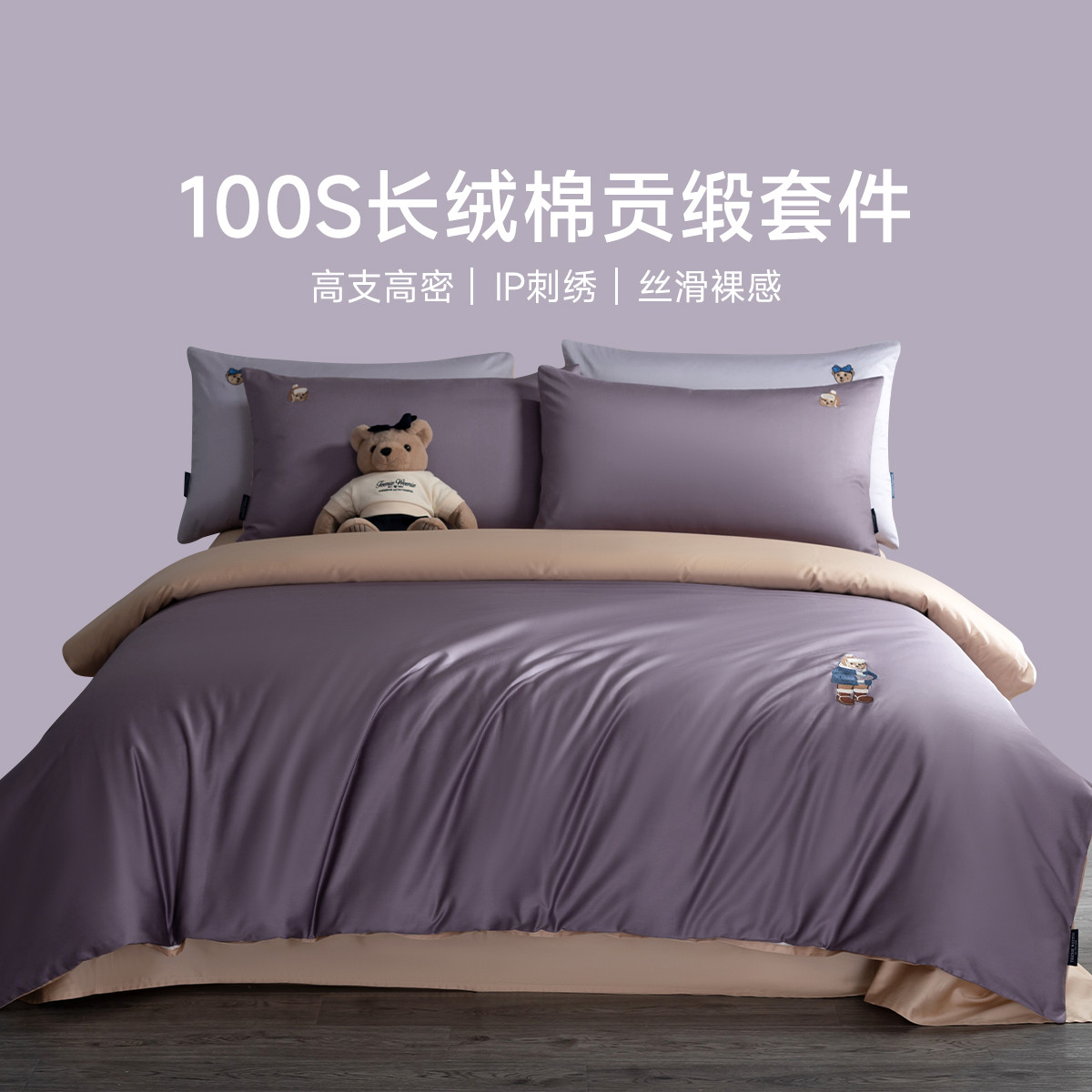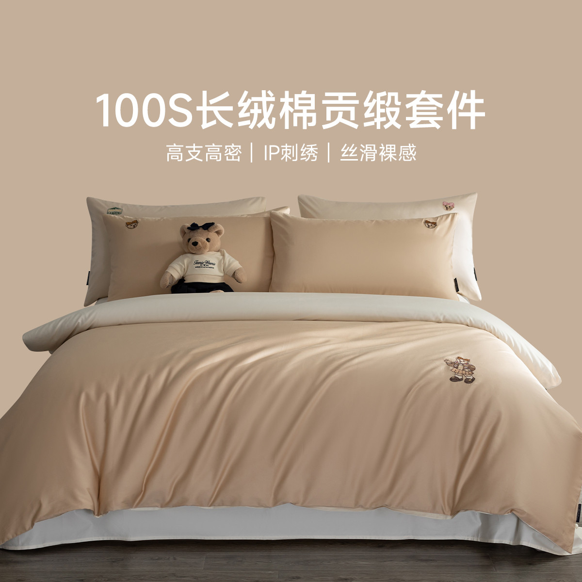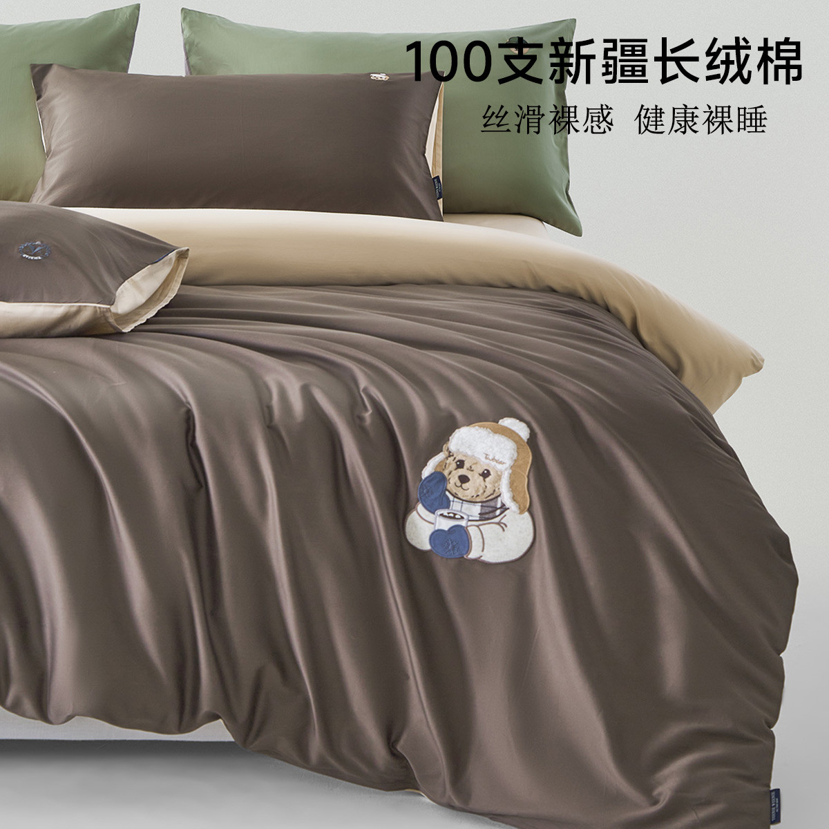 小熊100支轻奢长绒棉套件家用床品全棉被套床单三/四件套送礼 590556
