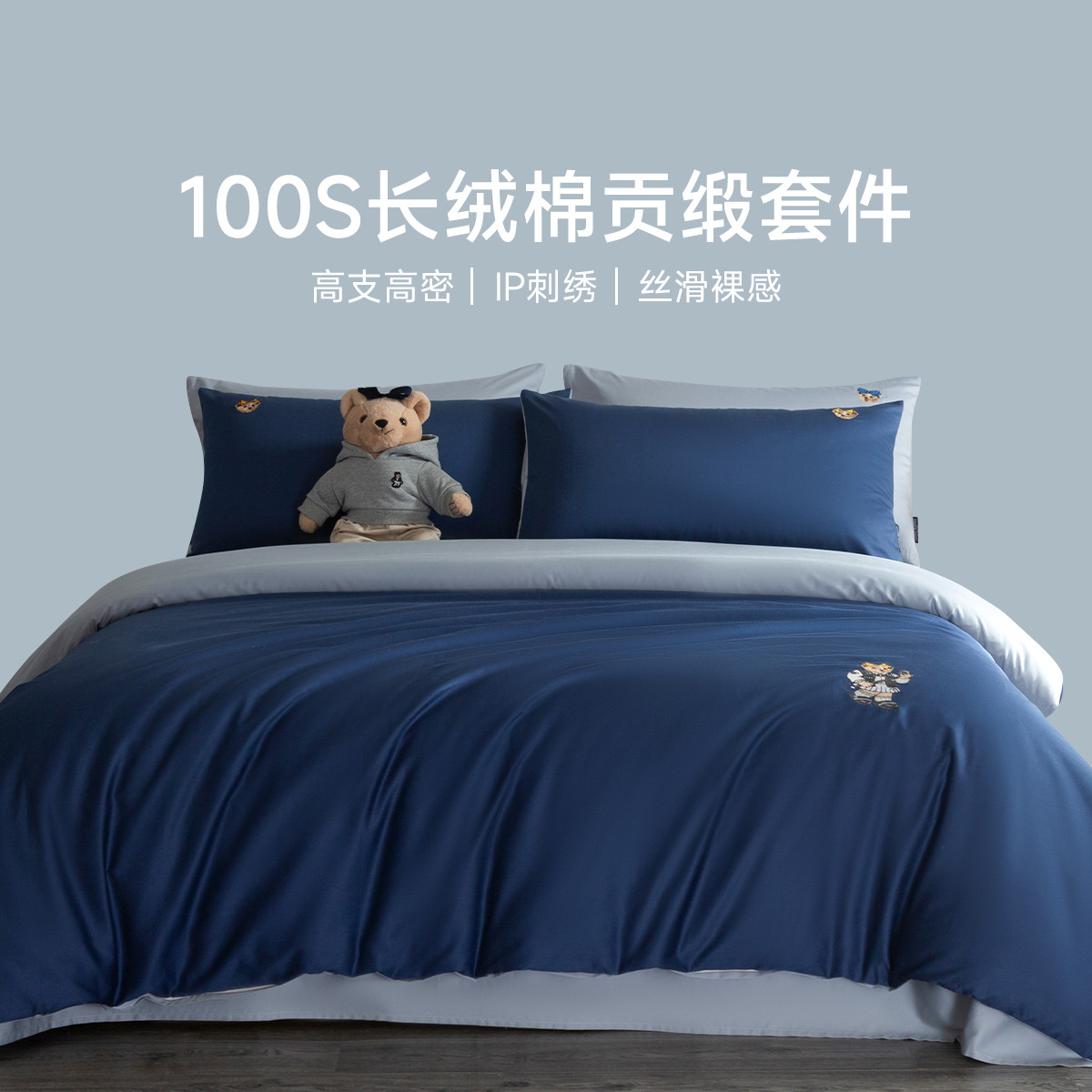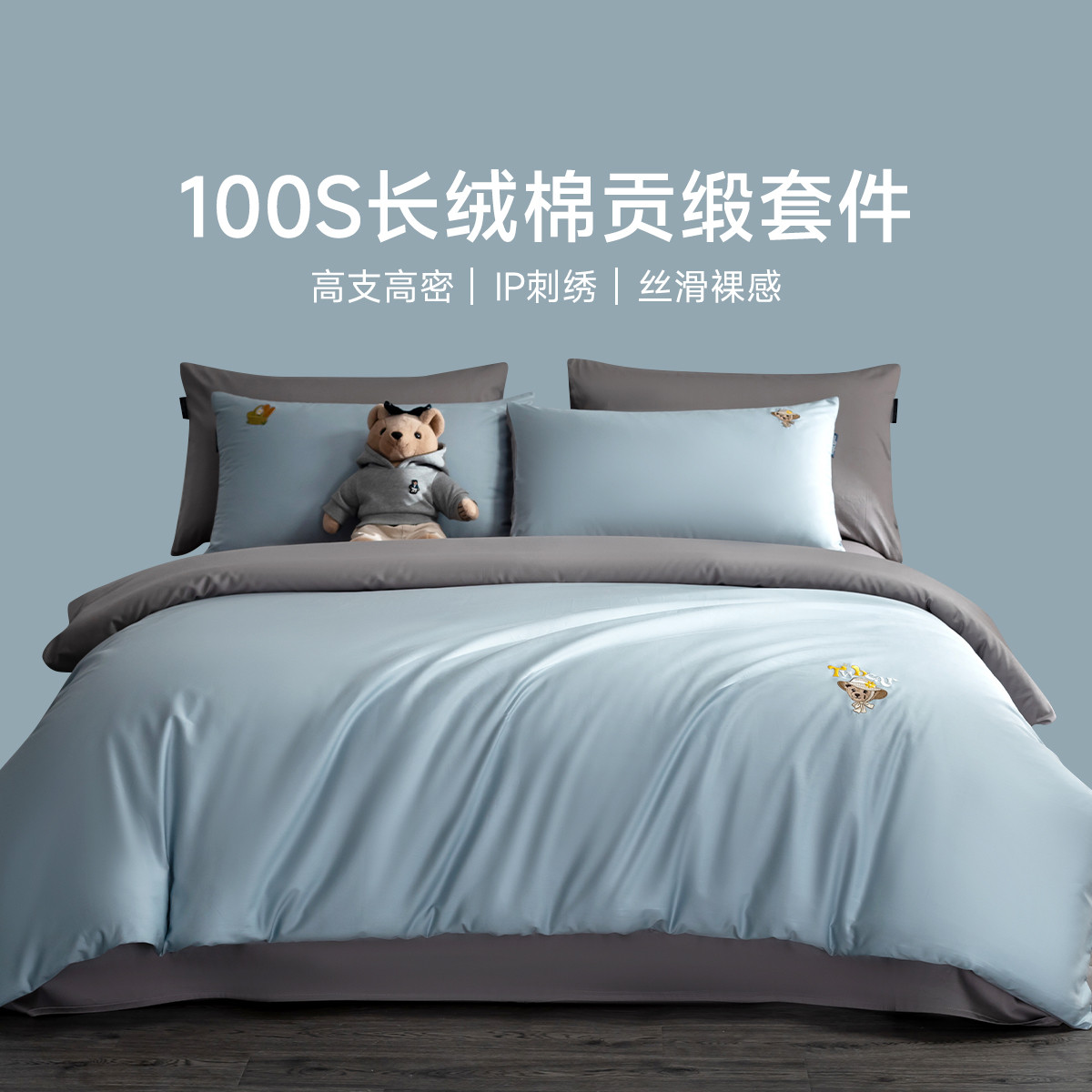 小熊100支轻奢长绒棉套件家用床品全棉被套床单三/四件套送礼 738012