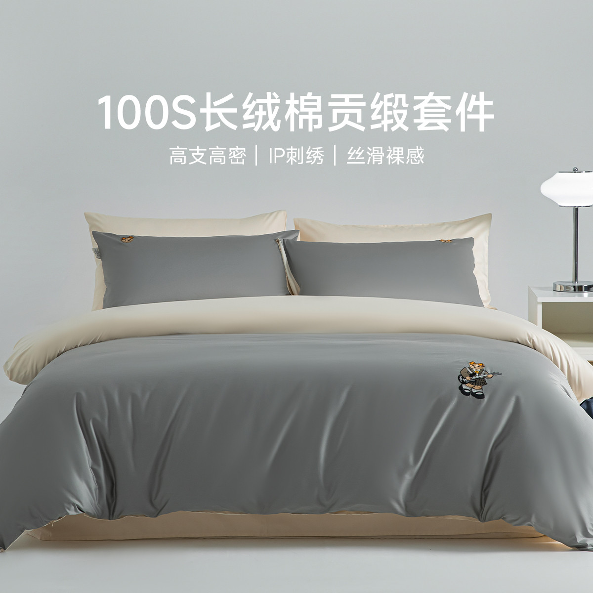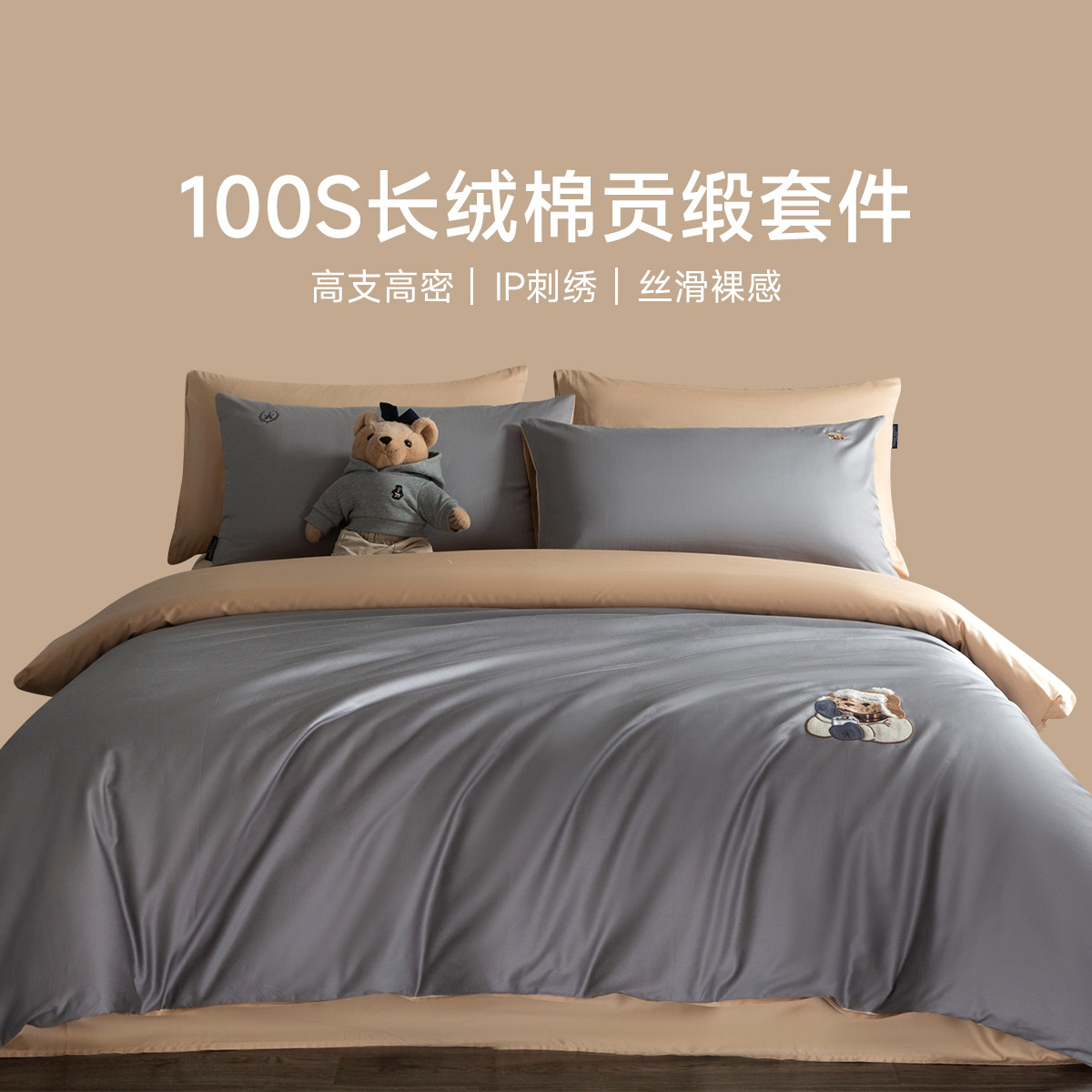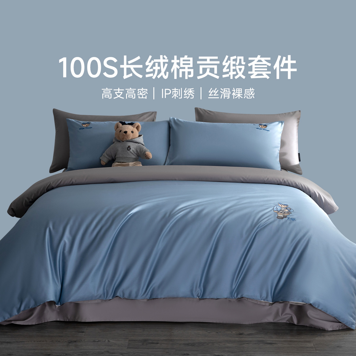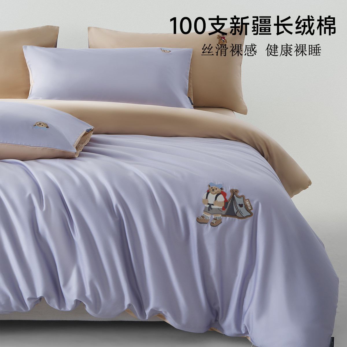 小熊100支轻奢长绒棉套件家用床品全棉被套床单三/四件套送礼 647900