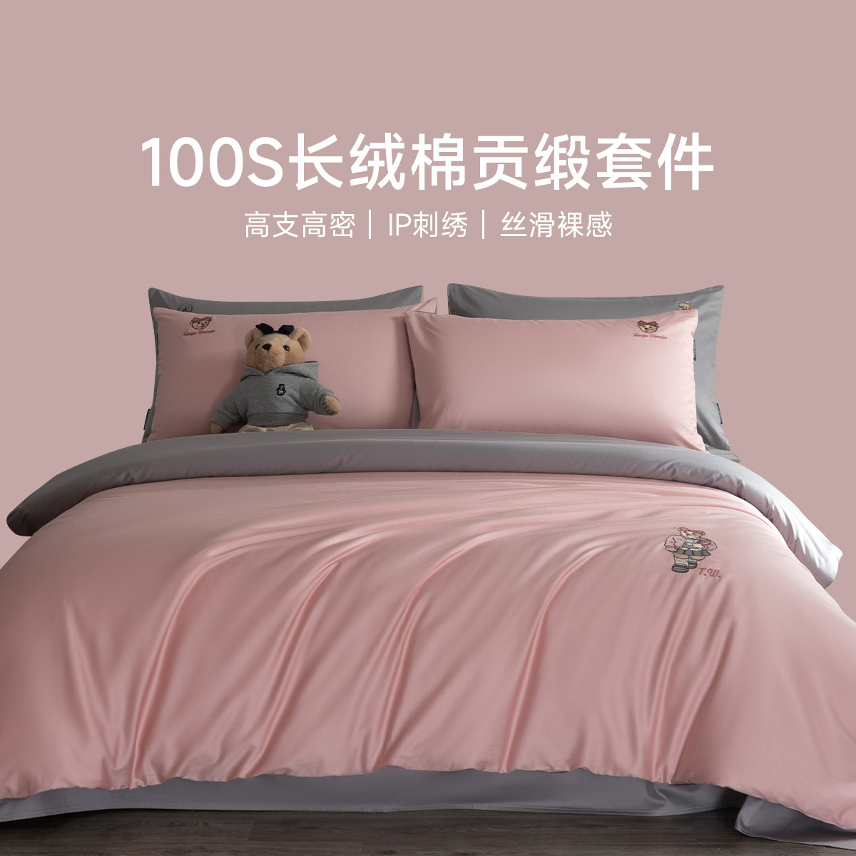 【轻奢贡缎】小熊送礼100支长绒棉套件春夏纯棉床单三/四件套 457308