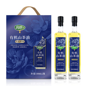 【京东/顺丰配送】润心有机鲜榨山茶油礼盒500ml*2瓶