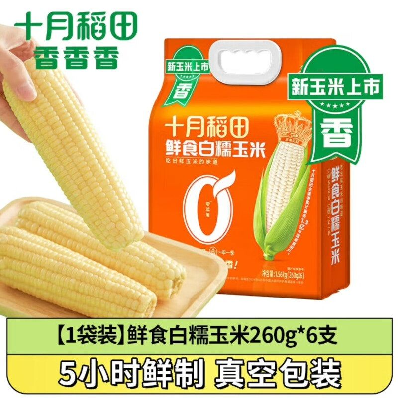 十月稻田鲜食白糯玉米1.56kg(260g*6根) 低脂 鲜食玉米 真空包装 新日期
