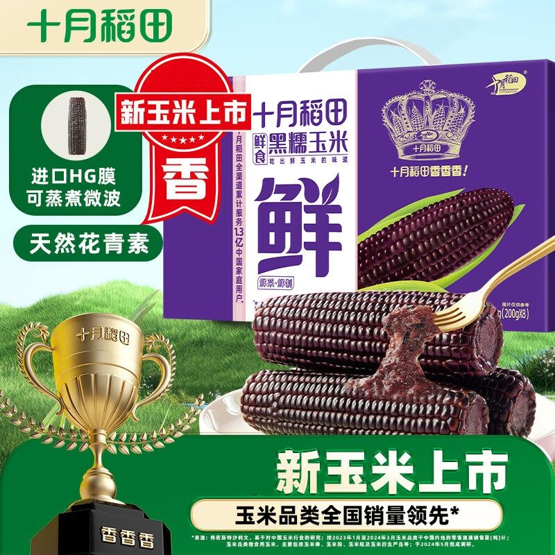 十月稻田 鲜食黑糯玉米1.6kg(200g*8根)东北紫玉米 花青素 杂粮礼盒 鲜食玉米 真空包装 新日期