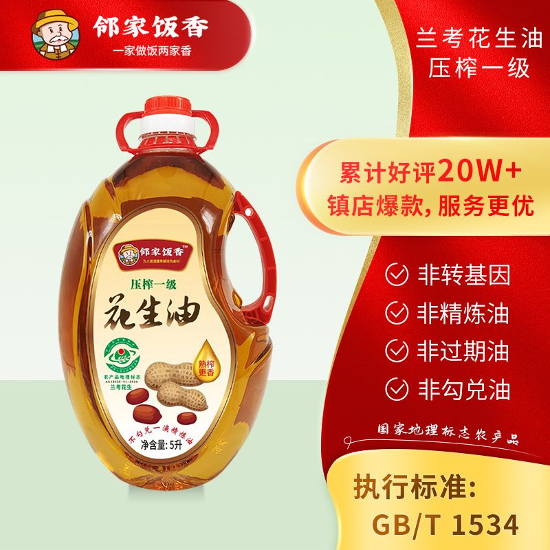 邻家饭香 压榨一级花生油 国家地理标志农产品兰考花生压榨 5L/瓶 LJFX286