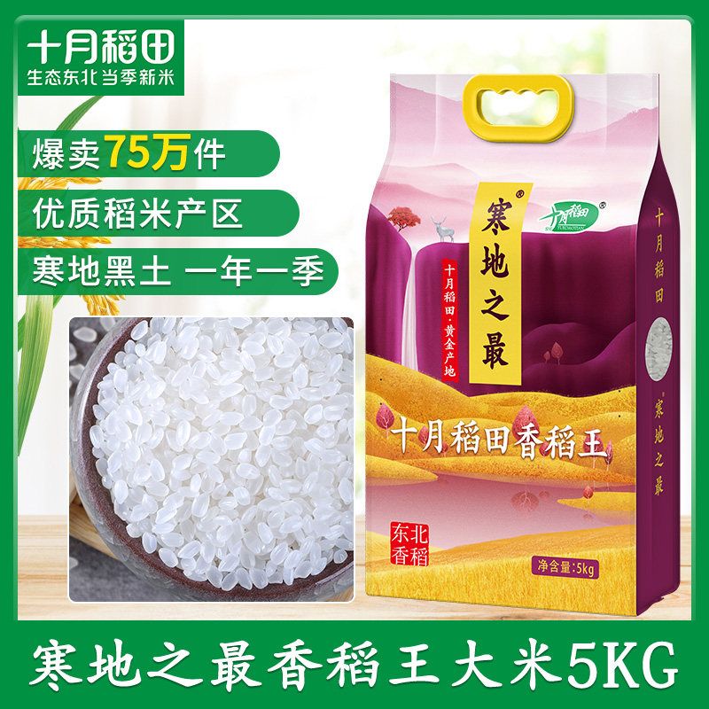 十月稻田 寒地香稻王大米 5kg 东北大米 真空包装 新日期