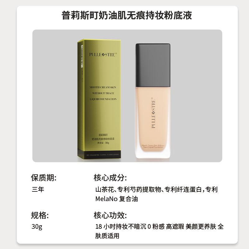 PULLE STRE/普莉斯町 奶油肌无痕持妆粉底液30g/瓶【买一送一,到手2瓶,下单额外加赠美妆蛋2个】