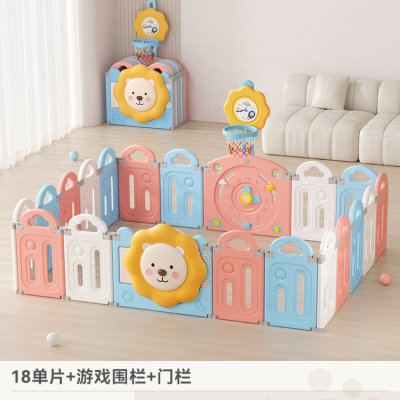 BabyGo 太阳狮儿童折叠游戏围栏 18片+1门栏+1游戏栏(送投篮架+篮球)