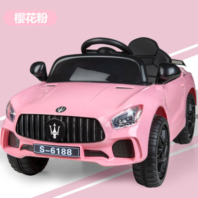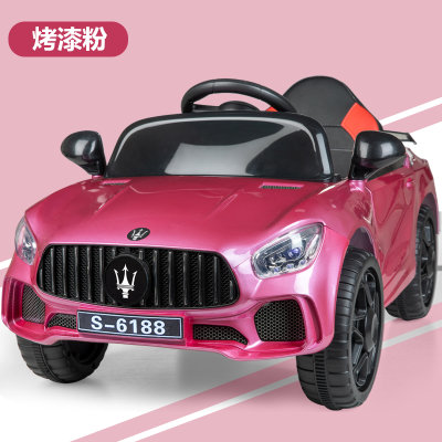 手拉手 儿童烤漆皮座玛莎拉蒂电动汽车 双驱 粉色