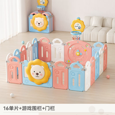 BabyGo 太阳狮儿童折叠游戏围栏 16片+1门栏+1游戏栏(送投篮架+篮球)