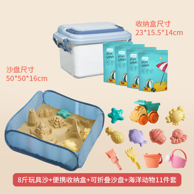 BabyGo 太空沙 玩具沙8斤+沙盘+收纳盒+海洋动物11件套