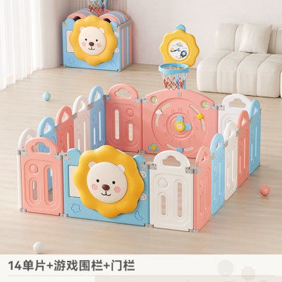 BabyGo 太阳狮儿童折叠游戏围栏 14片+1门栏+1游戏栏(送投篮架+篮球)
