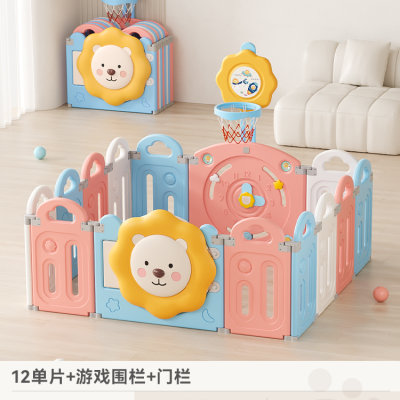 BabyGo 太阳狮儿童折叠游戏围栏 12片+1门栏+1游戏栏(送投篮架+篮球)