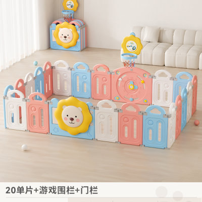 BabyGo 太阳狮儿童折叠游戏围栏 20片+1门栏+1游戏栏(送投篮架+篮球)