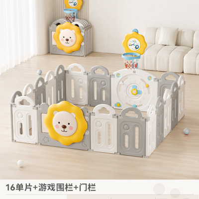 BabyGo 太阳狮儿童折叠游戏围栏 高级灰 16片+1门栏+1游戏栏(送投篮架+篮球)