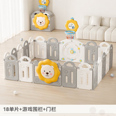 BabyGo 太阳狮儿童折叠游戏围栏 高级灰 18片+1门栏+1游戏栏(送投篮架+篮球)