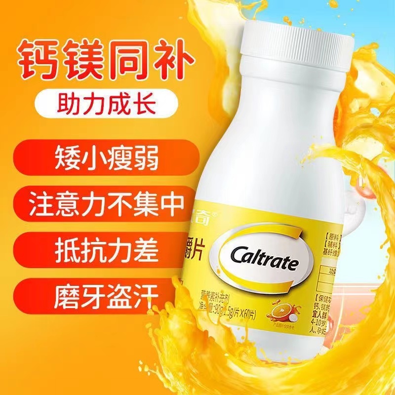 钙尔奇钙镁咀嚼片60片儿童青少年钙片学生成长补钙镁片碳酸钙保健品