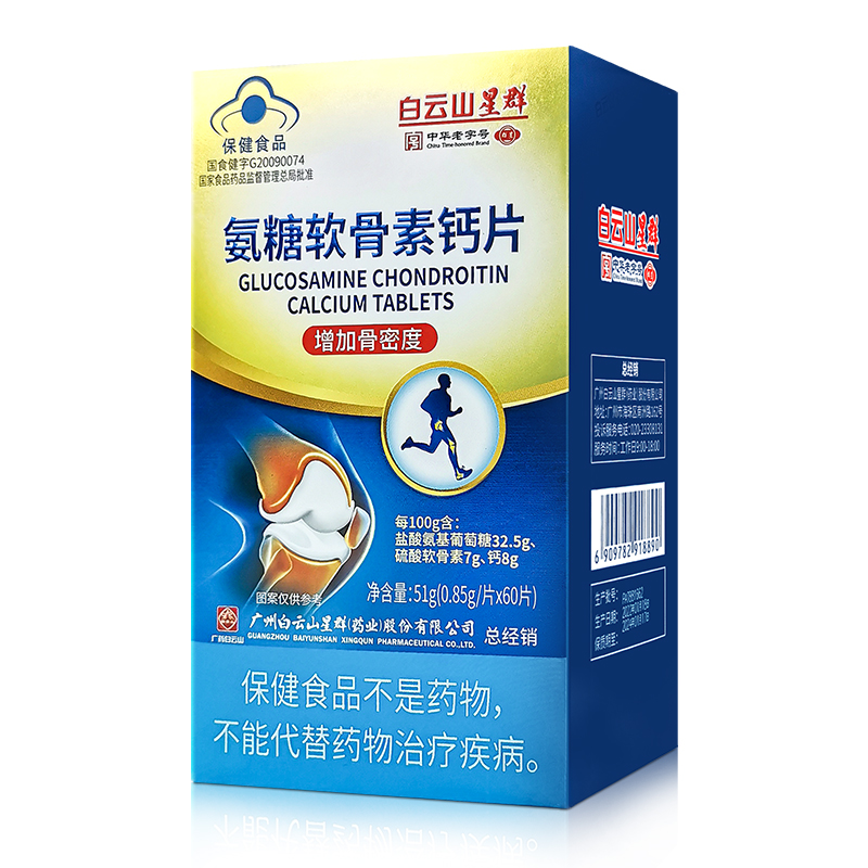 【广药旗舰】白云山星群氨糖软骨素营养咀嚼钙片0.85g*60片成人中老年关节碳酸钙保健品