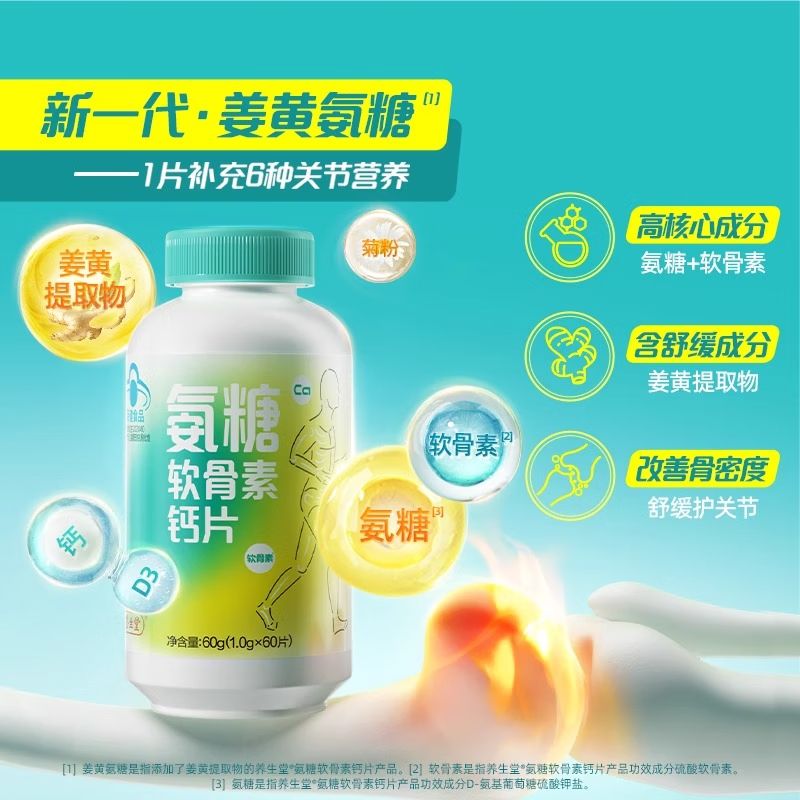 养生堂 氨糖软骨素中老年护关节钙片特含姜黄氨糖 60片