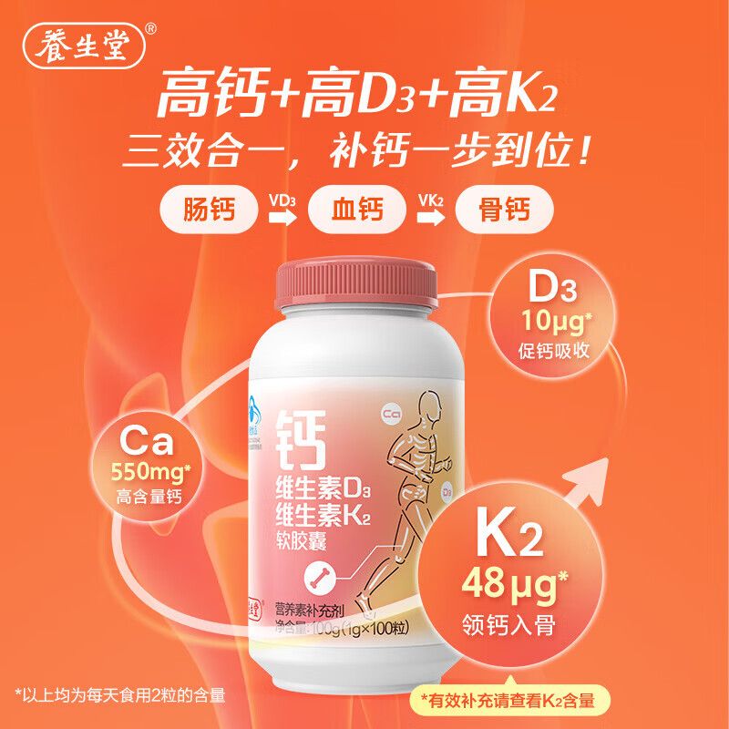 养生堂 钙片k2维生素d3软胶囊 100粒/200粒