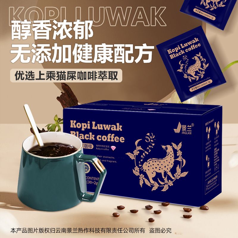 景兰玫金款猫屡黑咖啡盒装30袋 60克