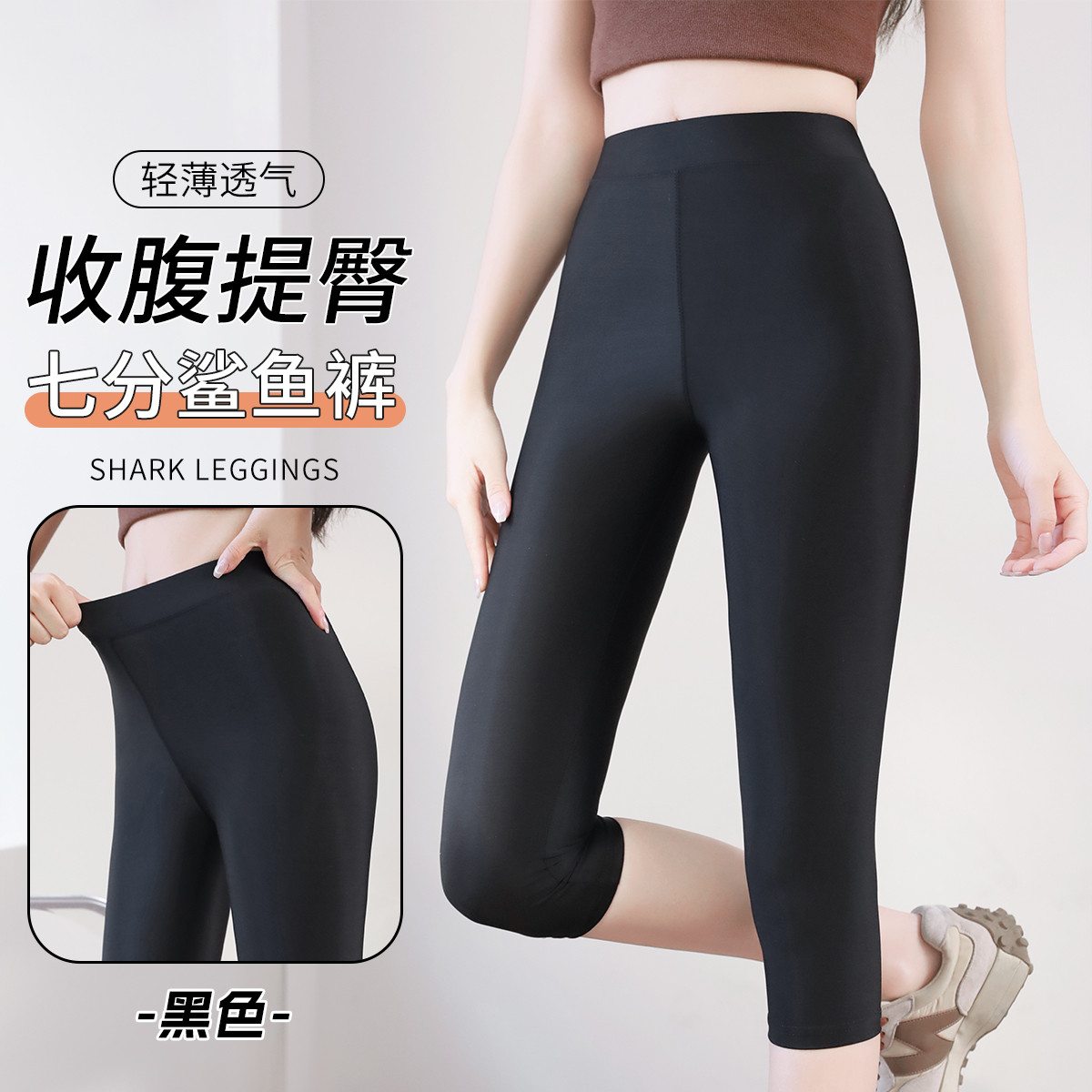 【收腹提臀】休闲风紧身裤冰丝七分打底裤女夏季薄款鲨鱼裤可外穿 538123