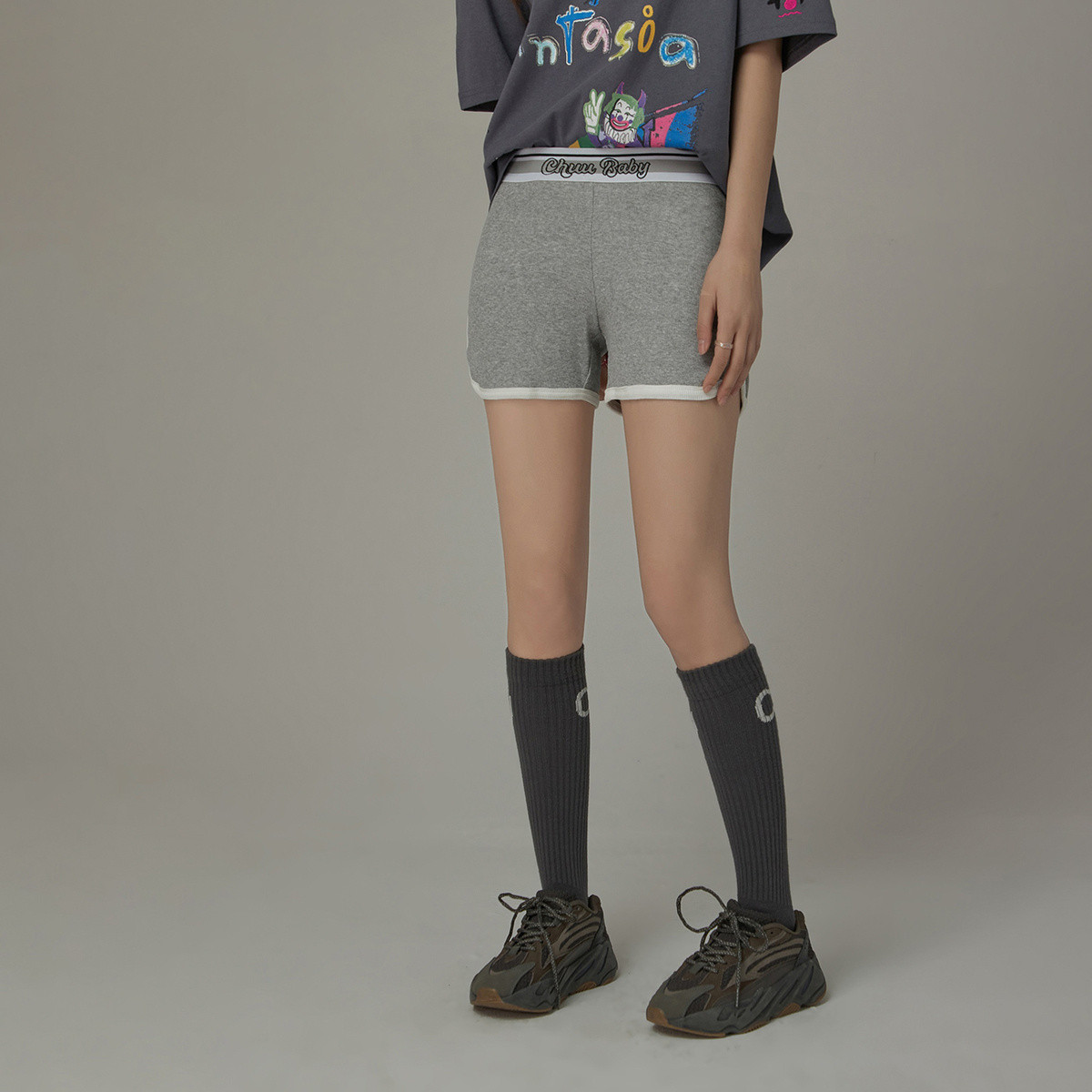 字母罗纹打底裤女士夏高腰小个子运动外穿短裤子 096979