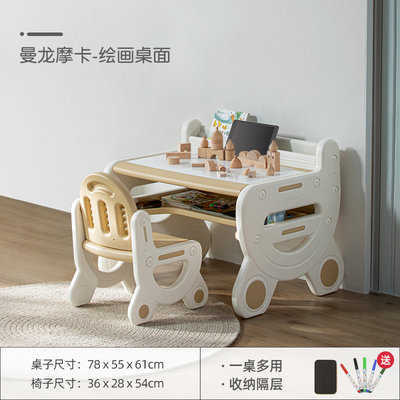 曼龙 奇思妙想学习桌椅(桌面可绘画)摩卡棕